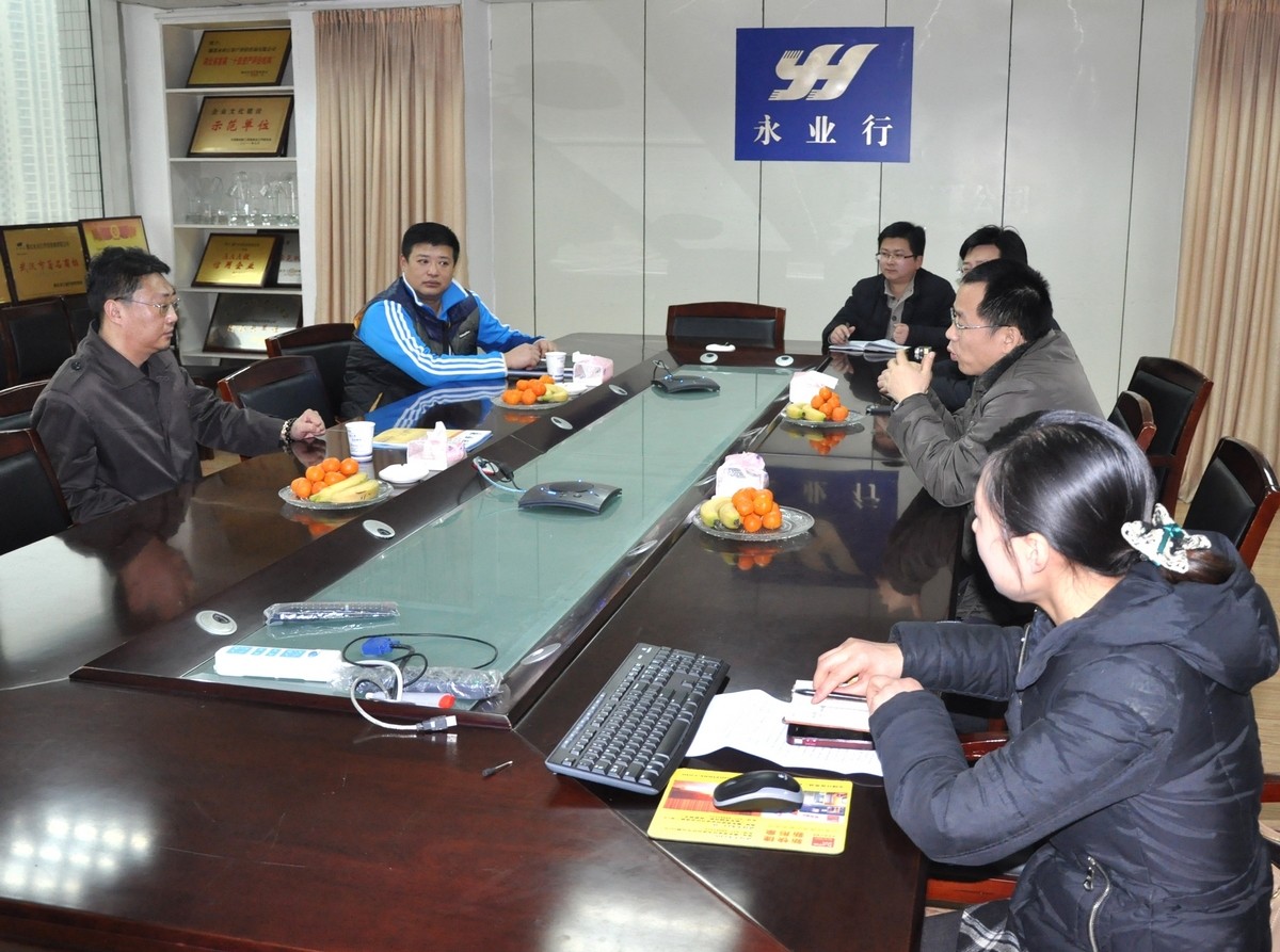 2014年2月25日,武汉市土地整理储备中心领导莅临永业行考察 2014-02-25 2月25日,武汉市土地整理储备中心(以下简称“市土地中心”) 书记赵楠及监察审计室副部长陈敬伟等莅临永业行考察并指导工作。 公司总裁潘世炳,副总裁高军,地产顾问部总经理雷小军、副总经理郭华等热情接待了赵书记一行。潘总介绍了永业行近几年的发展概况、规范管理措施及大数据建设进展等情况。赵书记等实地考察参观了永业行的办公场所,对永业行的行业地位、发展现状及管理模式等予以充分肯定,鼓励永业行继续做大做强,持续引领行业发展。 MORE