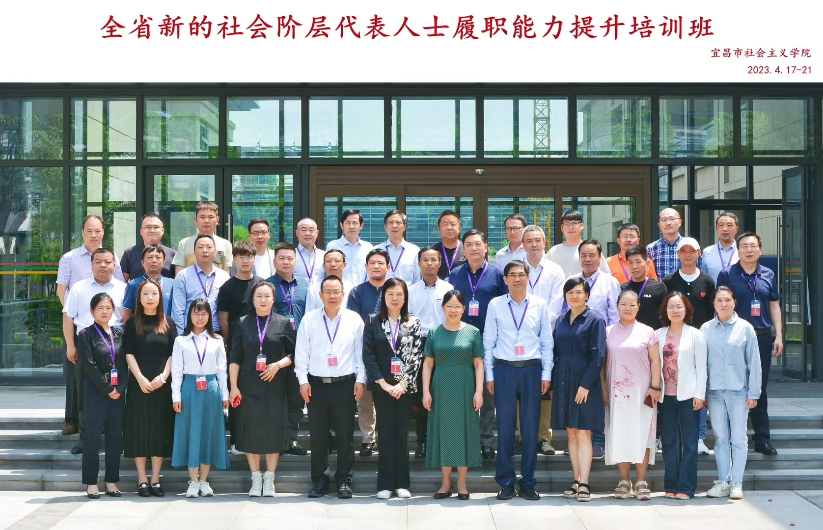 4月17日至21日,湖北省新的社会阶层代表人士履职能力提升培训班在宜昌市委党校开班。省委统战部副部长程武作动员讲话并授课。宜昌市委统战部常务副部长周鸿到会致辞,副部长王云洋参加开班式。省委统战部新的社会阶层处处长袁伟主持开班仪式。省政协常委、省新联会副会长、永业行董事长潘世炳与来自全省的36名新阶层人士代表参加培训。