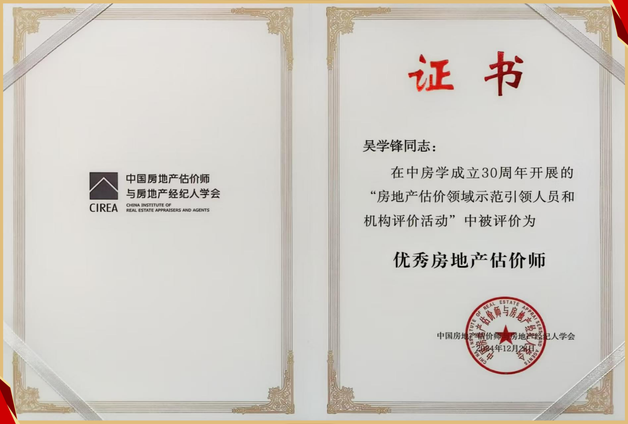 凭借自身的专业能力和卓越贡献,永业行党委书记、董事长潘世炳被评为 “特殊贡献房地产估价专家”,常务副总裁吴学锋获评 “优秀房地产估价师”。